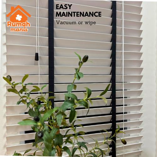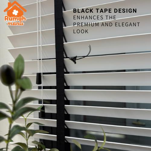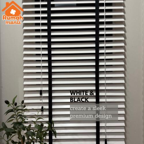 2 Panel Tirai Kayu Putih/Timber Blind 100% Basswood/Kayu Asli Dengan Pita Hitam Modern Untuk Penutup Jendela Yang Cantik Dan Berkualiti Tinggi - Soft, Curtain homeblind venetian bidai kayu ruang tamu