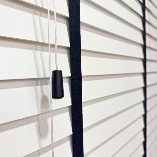Special Design!!! 100% Basswood White Timber Blinds with Black Tape – Modern Window Covering"